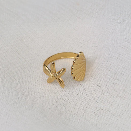 "Dory" Gold Plated Cowrie Shell Adjustable Ring