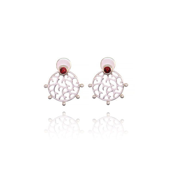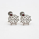 Our Roseni Stud Earrings have been named after the coral species Acropora Roseni and feature a compact round shape with branching coral patterns and a 3mm natural rich red garnet stone. Delicate metal balls decorate the boundary of the design. The ear studs have been crafted from sustainable recycled 925 sterling silver and polished to a shiny finish.